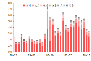 期权行情:上周沪深300看跌期权合约日均成交量大幅上涨;近月平值看涨期权隐含波动率为17.27%,较前值下降3.65%;看跌期权隐含波动率为17.63%,较前值下降3.32%。上周中证1000看跌期权合约日均成交量大幅上涨;近月平值看涨期权隐含波动率为22.58%,较前值下降7.34%;看跌期权隐含波动率为22.58%,较前值下降7.50%。