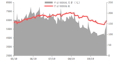 标的指数与行情:上周沪深300指数收于3842.47点,较前值上升0.99%;累计成交10273亿元,日均成交2055亿元,较前值增加291亿元;中证1000指数收于6406.46点,较前值上升4.60%;累计成交7189亿元,日均成交1438亿元,较前值增加175亿元。两市融资融券余额为14458亿元,北向资金当周净流出63亿元。涨幅前五的行业分别是医药(7.47%)、计算机(7.39%)、农林牧渔(7.26%)、电力设备及新能源(7.16%)、机械(5.42%);涨幅后五的行业分别是房地产(-1.64%)、银行(-1.84%)、煤炭(-2.31%)、消费者服务(-3.37%)、食品饮料(-4.77%)。