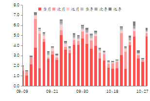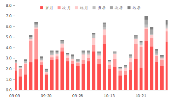 期权行情:上周沪深300期权合约换月后日均成交量大幅增加;近月平值看涨期权隐含波动率为22.52%,较前值上升3.70%;看跌期权隐含波动率为22.69%,较前值上升3.92%。上周中证1000期权合约换月后日均成交量大幅增加;近月平值看涨期权隐含波动率为27.07%,较前值上升4.44%;看跌期权隐含波动率为26.76%,较前值上升4.12%。