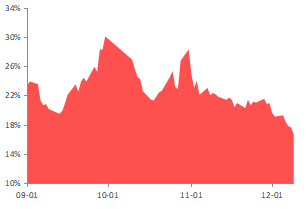 图17:300看涨期权隐含波动率(近月平值) |