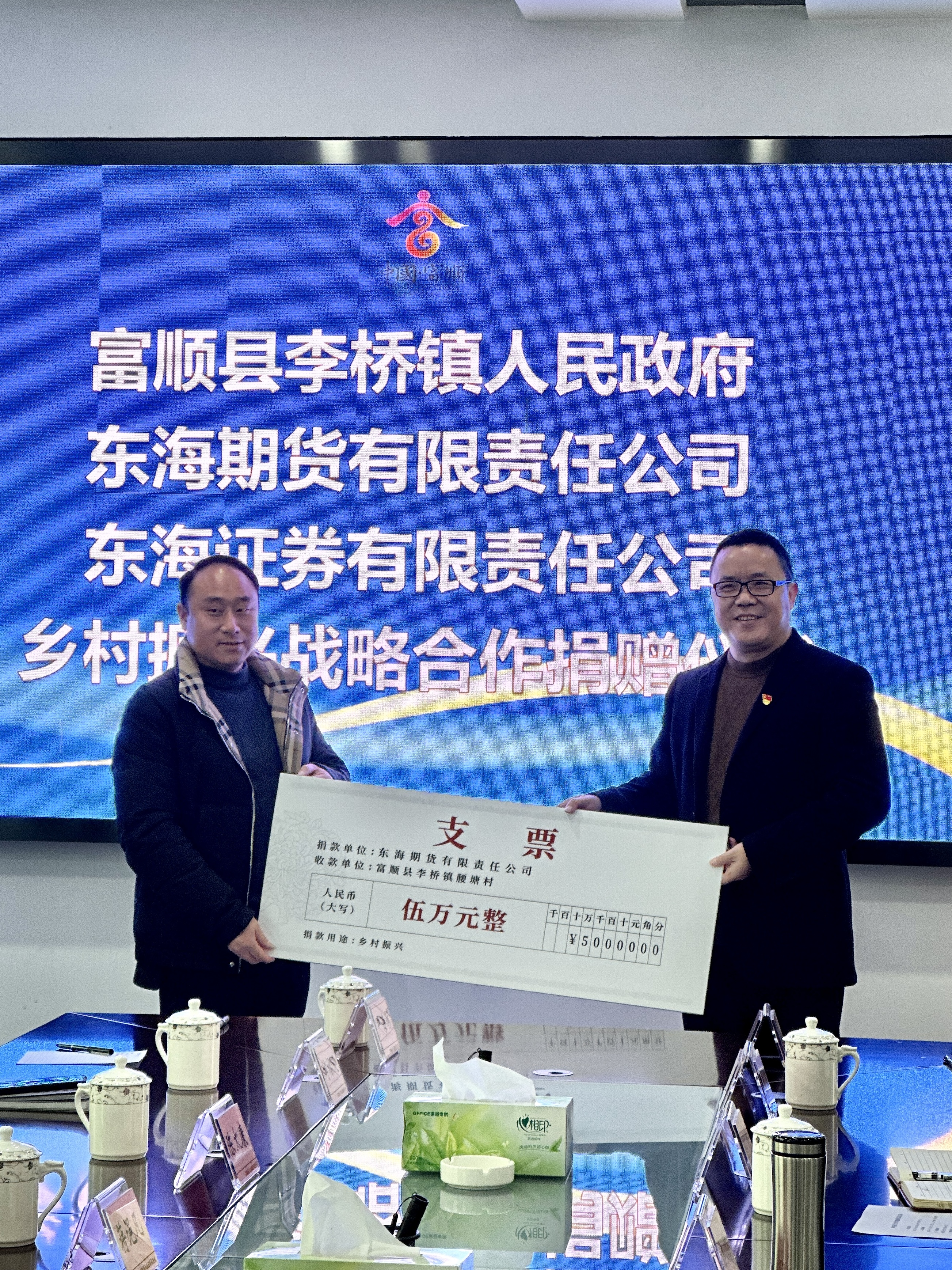 会上,东海期货分别与代寺镇丰光村、李桥镇腰塘村签署党建共建及结对帮扶协议,现场捐赠产业帮扶资金十万元。