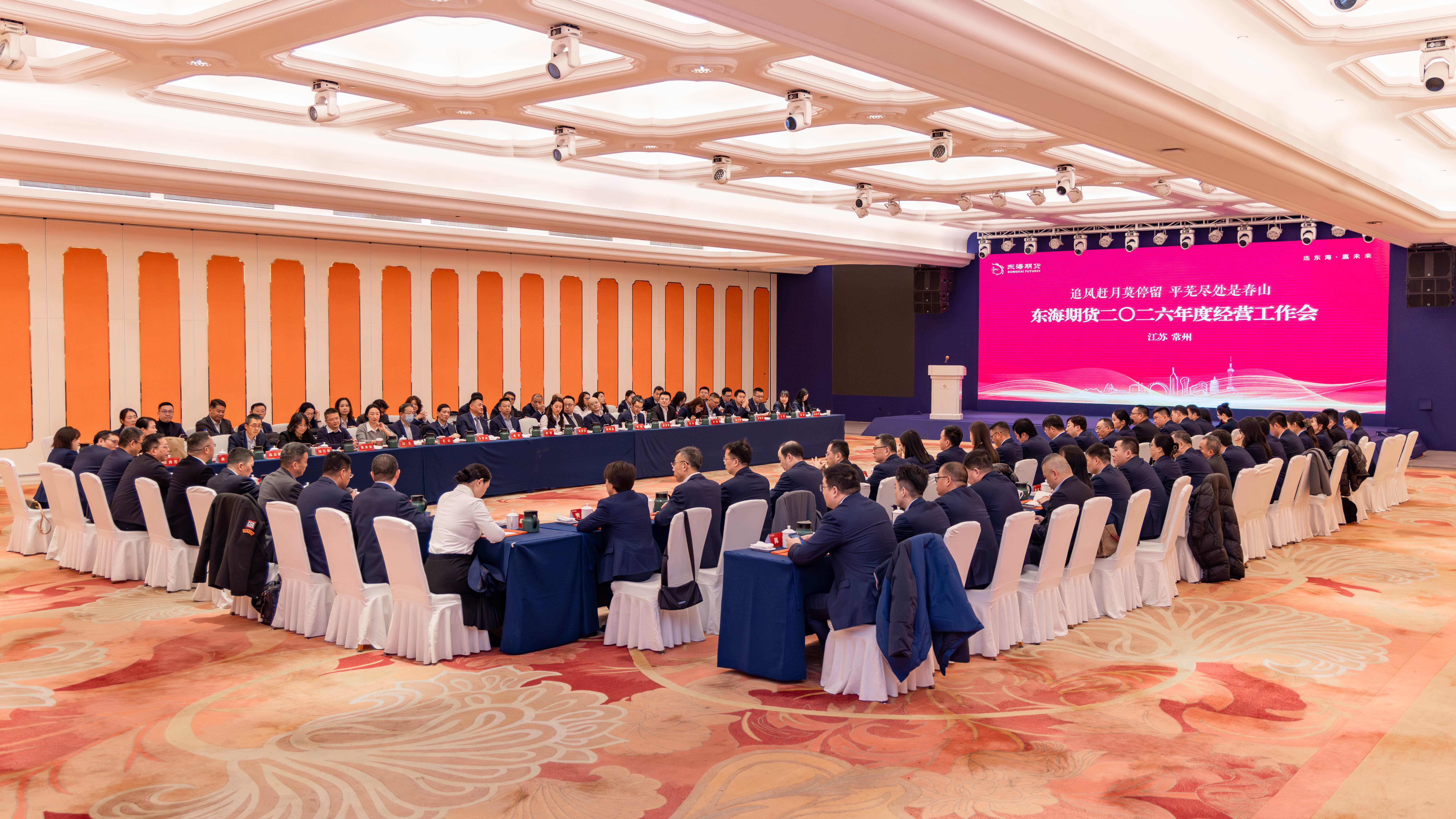 2026年2月5日至7日,东海期货2026年度经营工作会议在江苏常州隆重召开。东海证券党委书记、董事长,东海期货董事长王文卓,东海证券总裁助理、东海期货董事蒋浥凡,东海期货党总支书记、总经理陈太康,东海期货高级顾问殷晓峰及集团相关部门负责人,公司总经理室全体成员、各管理部门总助及以上人员、各业务部门负责人,以及东海资本管理干部共计90余人参会。会议由公司常务副总经理、董事会秘书李俊主持。