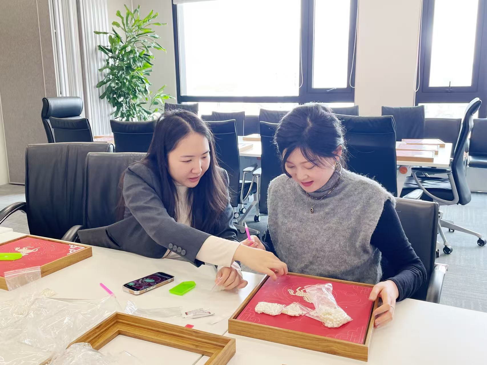 为丰富节日内涵、传承传统文化,公司特别组织全体女员工开展“宋锦珍珠画”手工制作活动,将传统文化与现代审美相融合,带领大家在吉祥纹样与手工艺术的碰撞中,感受东方美学的雅韵与匠心。