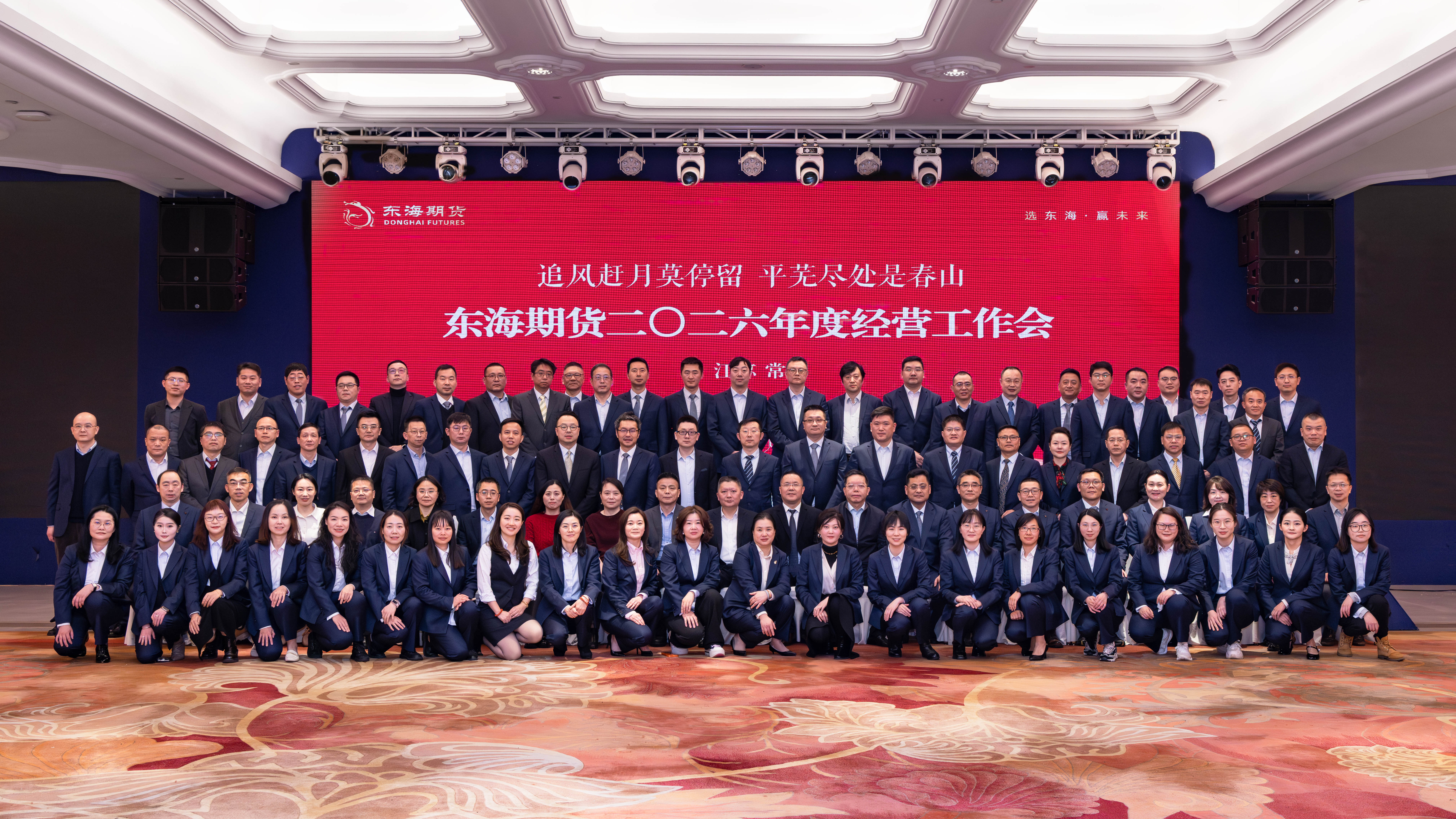 2026年2月5日至7日,东海期货2026年度经营工作会议在江苏常州隆重召开。东海证券党委书记、董事长,东海期货董事长王文卓,东海证券总裁助理、东海期货董事蒋浥凡,东海期货党总支书记、总经理陈太康,东海期货高级顾问殷晓峰及集团相关部门负责人,公司总经理室全体成员、各管理部门总助及以上人员、各业务部门负责人,以及东海资本管理干部共计90余人参会。会议由公司常务副总经理、董事会秘书李俊主持。